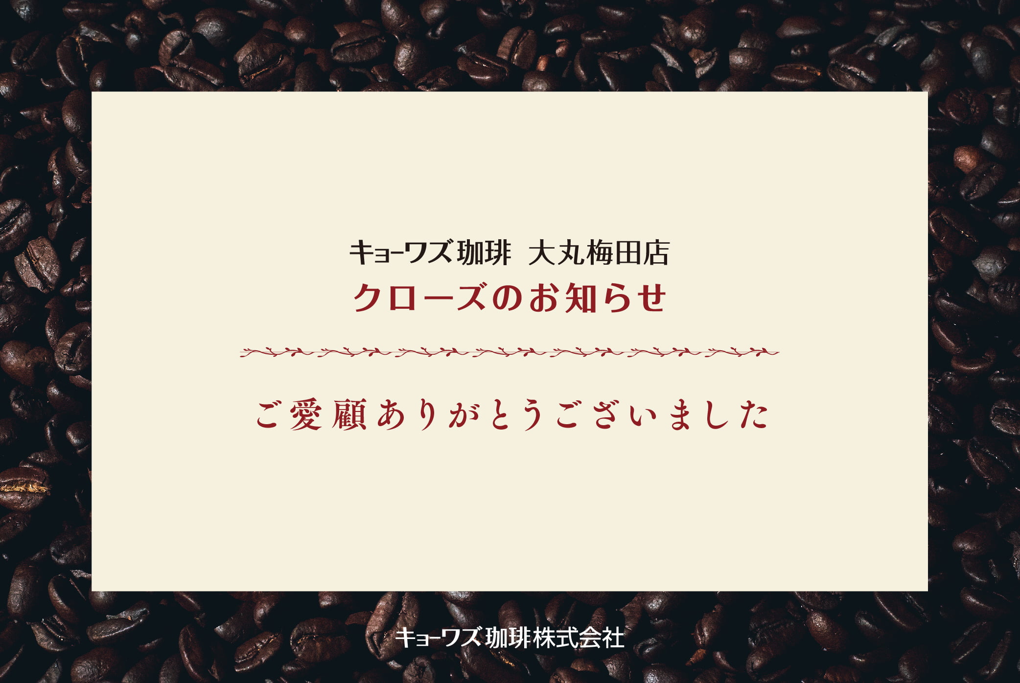キョーワズ珈琲 大丸梅田店 クローズのお知らせ